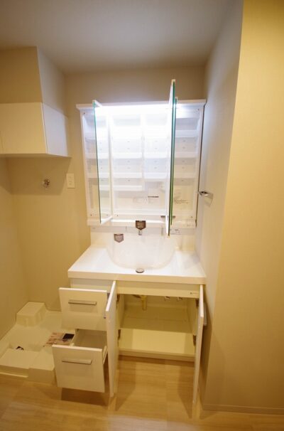 - 三面鏡と引き出し収納
