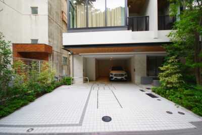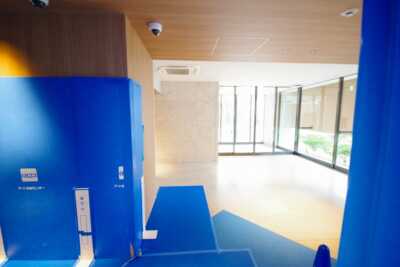 エントランスは計2か所あり、代々⽊公園に⾯した井の頭通り側と、奥渋⾕の街につながる遊歩道側に設置されています。エントランスエントランスはハンズフリーキーを採用したオートロック。当然宅配ボックスも完備しています。敷地内に駐車場は2台用意されていますが、身障者用1台と事業協力者住戸用の計2台です。駐輪場は合計52台用意されています。