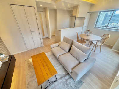 新宿新都心ビューの高層階8階部分の角部屋が登場!専有面積50.65平米、間取りは1LDK。室内は新規内装フルリノベーション済み!