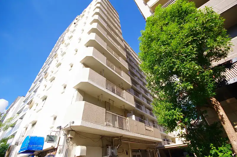 目黒グリーンコープは1971年築の旧耐震基準の物件になります。建物構造はSRC造地上13階建て総戸数80邸。ホワイト吹付の外観に丸窓が特徴的なレトロ感ある物件。築年は古いけど管理状態良い物件ですよ!