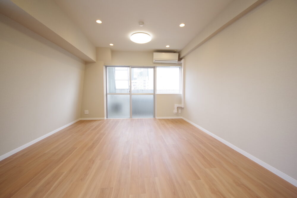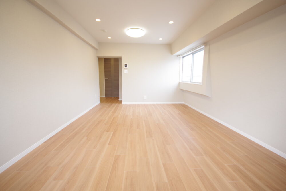 11階部分南向き東南角部屋です。間取りは2lDK。室内はフルリノベーションです。