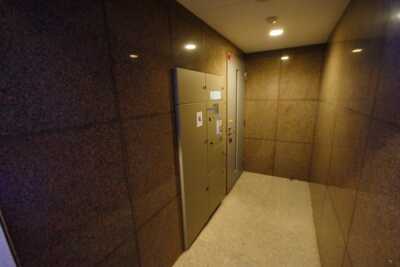 外観はダークカラーのタイル貼り。敷地外周の1階部分を擁壁と植栽で囲みプライバシー性を高めています。エントランスは天井高があり開放感があります。オートロックを抜けた先にはソファセットが置かれたロビーがあり、過分な共用設備がないのも良いですよね。