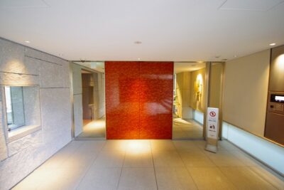 築浅のプラウドなので重厚感、グレード感は一流クラス。綺麗に管理された植栽を脇目にアプローチを進むと重厚感のある開放的なエントランスが待っています。エントランスはもちろん、駐車場のリングシャッター、駐輪場にもオートロックセキュリティがあり徹底したセキュリティ体制を敷いています。屋上には太陽光パネルが設置され屋上緑化されています。