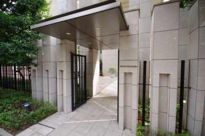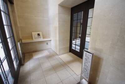 淡島通りから大きくセットバックされた車寄せ正面にエントランスがあり、3層吹き抜けで全面ガラス貼りのホールを抜けてお部屋へ。